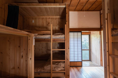 This is a mixed-gender dormitory room. It features our pride and joy: cedar beds crafted by our carpenter. Each space has power sockets installed, and the interior is spacious, allowing you to relax comfortably. |