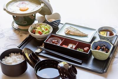 Breakfast We prepare a simple breakfast of *‘Koshihikari’* rice and miso soup that incorporates Oki seaweed, which are simple yet delicious ingredients. *You are free to help yourself to a second helping of both the rice and miso soup.
