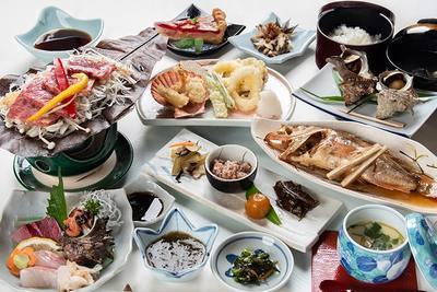 Oki Kaiseki (Seasonal Multi-Course Set-Menu) We prepare the most delicious seasonal seafood available, including amberjack, sea bream, striped seabream, sweet shrimp, squid, and bay scallops.